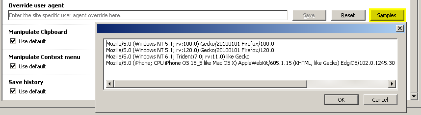 During last year I frequently see a famous: "Your browser is outdated. Update it". And every time, before forgetting about existence of this site forever, I am trying to cheat the protection by using some fake useragent string (even knowing that this rarely helps), so convenient way to add this string to browser settings is a good thing.